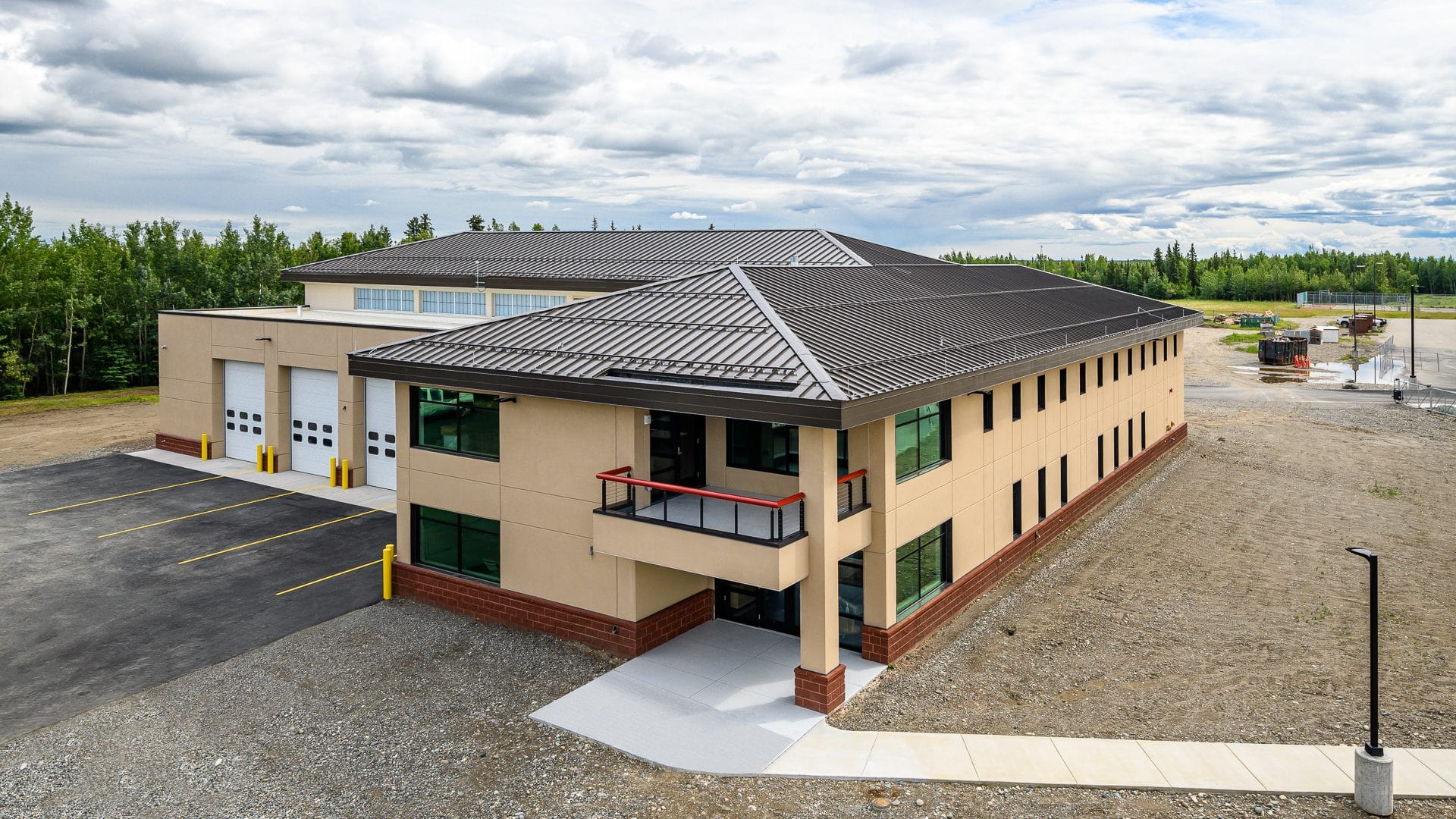 Built to support round-the-clock response across a remote 120-mile corridor, the facility accommodates fourteen vehicles and provides living space for on-duty staff. Strategic use of daylight, clerestory windows, and outdoor views supports occupant wellness during Alaska’s dark winter months. The project has been certified LEED Silver.