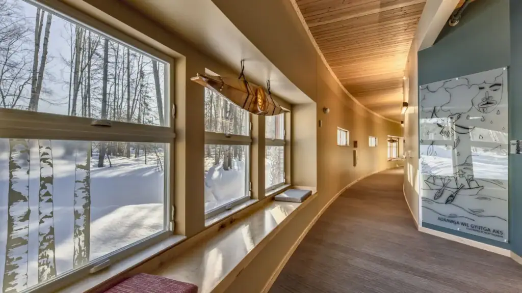 The CINHS classrooms are nurturing spaces with warm, calm finishes, heated floors and indirect lighting. The central firepit and smoke hole light features, located in each room emphasize an educational philosophy focused on community sharing of stories and wisdom. The rooms open directly to remarkable playgrounds that stimulate the bodies and imaginations of children, while teaching them about traditional ways of life.