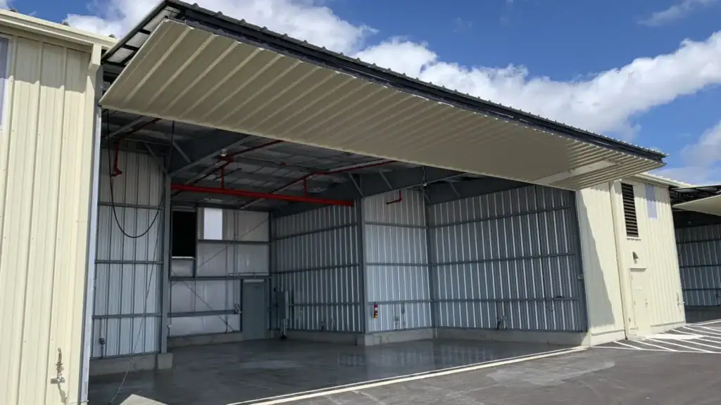 Our firm worked closely with the contractor and project team to optimize the design and meet the project budget, while offering improvements that included two buildings, each with 10 hangar bays in a ‘T-configuration’ and bi-folding hangar doors.