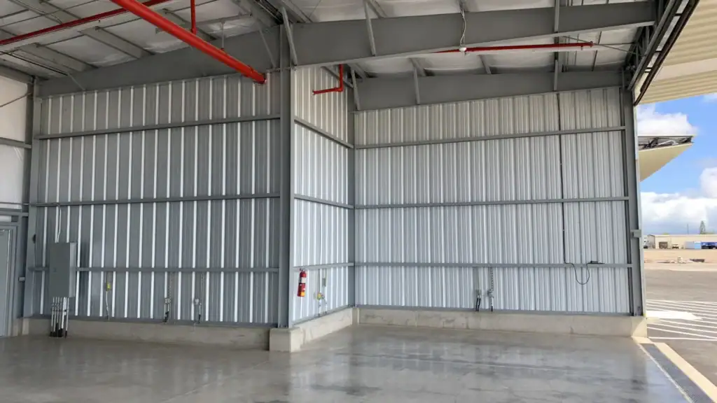 Our firm worked closely with the contractor and project team to optimize the design and meet the project budget, while offering improvements that included two buildings, each with 10 hangar bays in a ‘T-configuration’ and bi-folding hangar doors.