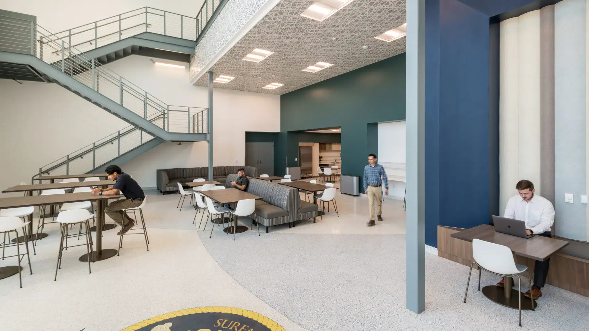 Explore Design led the interior design team for a comprehensive, 130,000 SF renovation which added high-tech vessel simulators, offices, support areas and secure OSS training facilities into an existing warehouse.